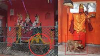 हनुमान जी के बाद अब मां दुर्गा की मूर्ति की परिक्रमा करता दिखा कुत्ता