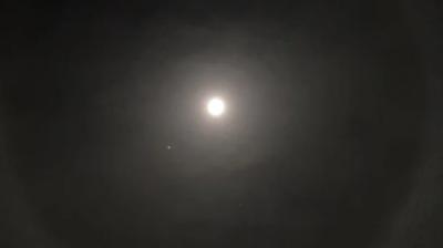 चांद के चारों ओर रोशन घेरे के साथ भोपाल का रात का नजारा हुआ खास
