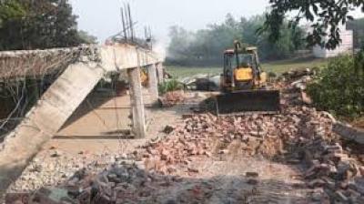 बुलडोजर और मजदूरों की टीम ने संभाली कमान, लगातार गिर रहे भवन