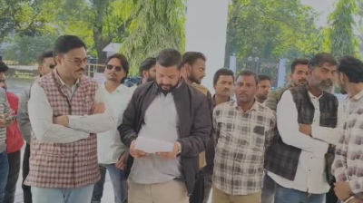 सागर: करणी सैनिकों ने एसपी कार्यालय के बाहर कीर्तन कर जताया विरोध