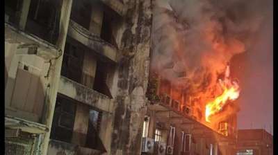 चार मंजिला इमारत में लगी आग से मचा हड़कंप, राहत कार्य जारी