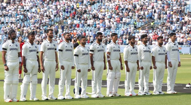 नई दिल्ली। हेडिंग्ले में भारत और इंग्लैंड के बीच खेले जा रहे पहले टेस्ट मैच का आखिरी दिन है और इस दिन दोनों ही टीमों के खिलाड़ी काली पट्टी बांधकर उतरे हैं। ये इस मैच में तीसरा मौका है जब खिलाड़ियों ने अपने बाजुओं पर काली पट्टी बांधी है। मैच के पहले दिन और तीसरे दिन भी ऐसा हुआ था।