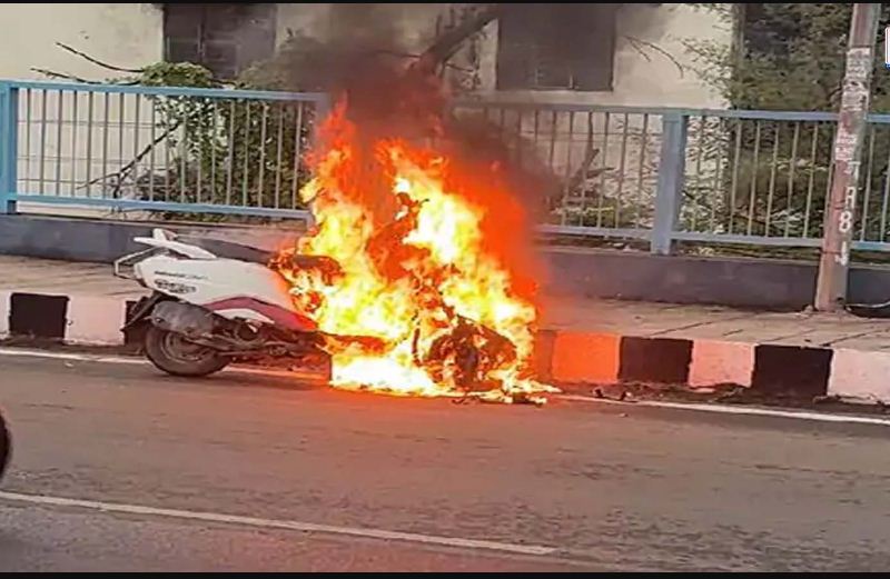 चेतक ब्रिज पर दौड़ती टू-व्हीलर में लगी आग, 15 मिनट में गाड़ी जलकर हुई खाक