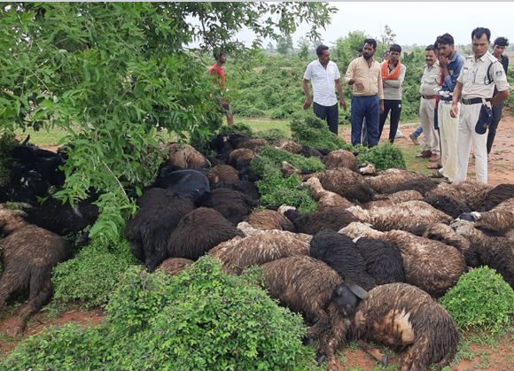 आकाशीय बिजली गिरने से पेड़ के नीचे खड़ी 27 बकरियों की मौत, 13 घायल
