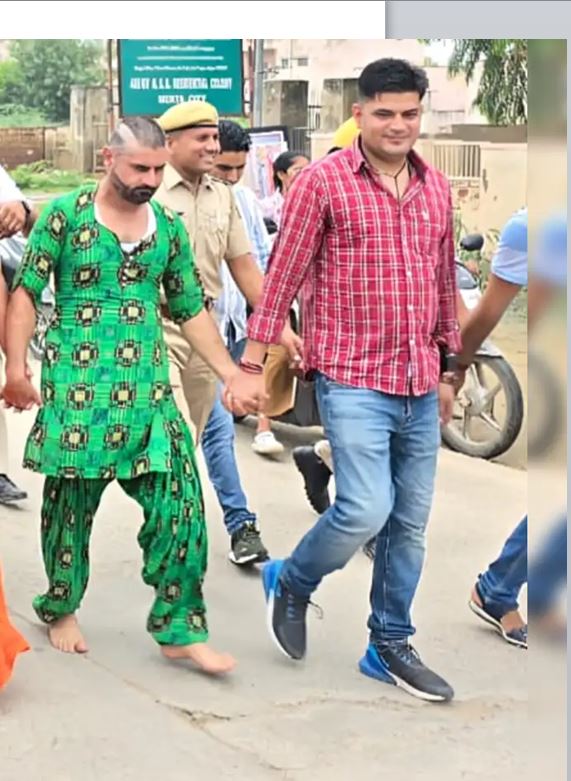 नागौर: राजस्थान के नागौर जिले की पुलिस ने एक अंतरराज्यीय ठगी गैंग का पर्दाफाश किया है, जो खुद को लॉटरी एजेंट बताकर रुपये दोगुने करने का झांसा देते थे। यही नहीं, ये आरोपी महिलाओं का भेष धारण कर लोगों को धोखा देने में भी माहिर थे। एक दिन पहले पकड़ में आए इन शातिर बदमाशों को मेड़ता पुलिस ने शुक्रवार को कोर्ट में पेश किया। इस दौरान कोर्ट तक परेड में बदमाश महिलाओं के भेष में ही नजर आए। फिल्मी गजनी की तरह उनके सिर का मुंडन भी करा दिया गया। आमजन के बीच पुलिस के अपराधियों में खौफ पैदा करने वाला इस जुलूस में भीड़ जुटी दिखी।