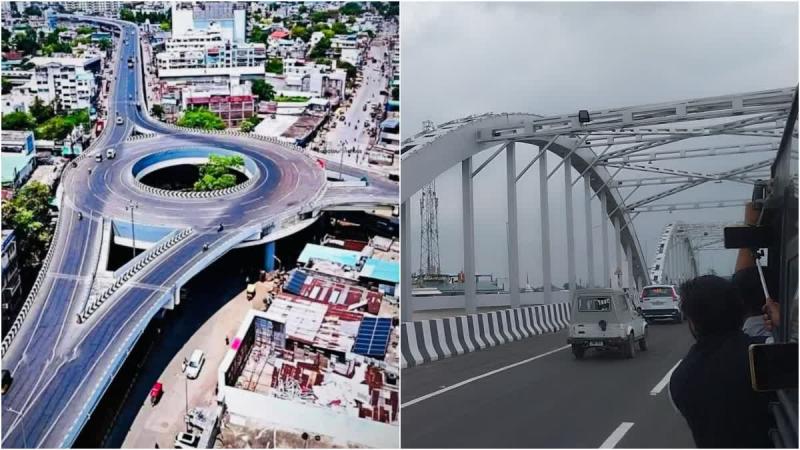 फ्लाईओवर ब्रिज के ऊपर गाड़ियां दौड़ी