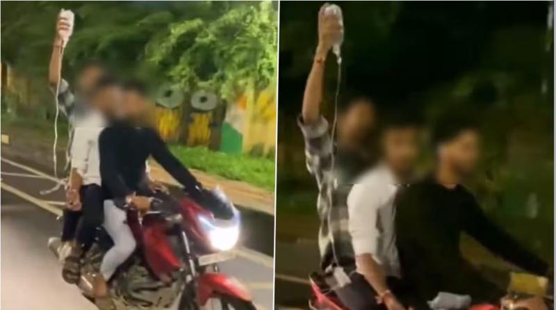 सलाइन के साथ बाइक की सवारी! बीमार दोस्त को लेकर दो युवकों का अजीब कारनामा, लोगों ने कहा ‘ये कैसा मज़ाक?’