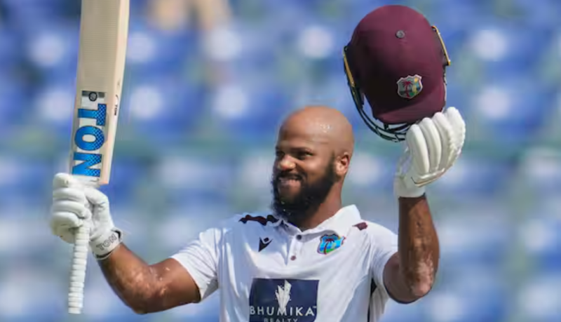 भारत की धरती पर 23 साल बाद वेस्टइंडीज ओपनर का शतक, अनोखे अंदाज में छक्का लगाकर बनाई सेंचुरी