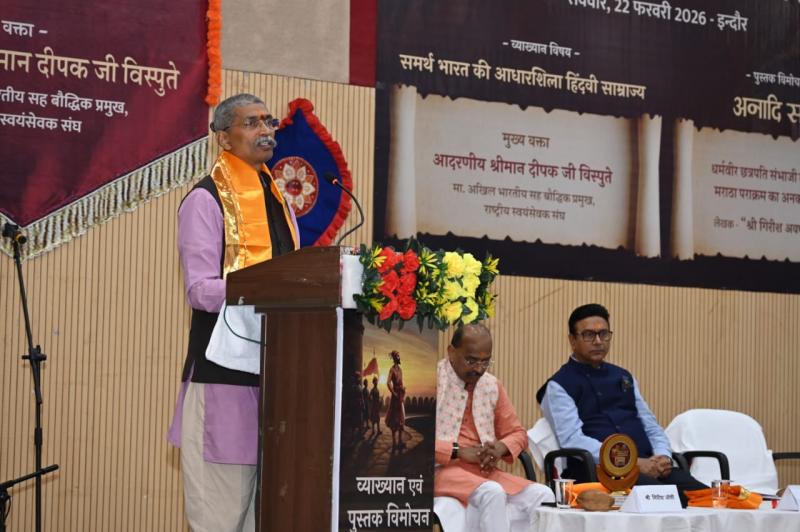 श्री शिवाजी रायगढ़ स्मारक मंडल, पुणे और अर्चना प्रकाशन, भोपाल द्वारा आयोजित, श्री गिरीश अवधूत जोशी द्वारा लिखित पुस्तक अनादी समर के विमोचन कार्यक्रम में समर्थ भारत की आधारशिला हिंदवी साम्राज्य विषय पर बोलते हुए राष्ट्रीय स्वयंसेवक संघ के अखिल भारतीय सह बौद्धिक प्रमुख दीपक विस्पुते ने कहा कि शिवाजी महाराज की कार्यशैली शासन, सुशासन पारदर्शिता जवाबदेही और जनमानस के जीवन स्तर का उत्थान का रहा। श्री विस्पुते ने अपने पूरे उद्बोधन में शिवाजी के जन्म से लेकर भारत के स्वतंत्रता तक के पूरे कालखंड का वर्णन किया। उन्होंने देश की वर्तमान भौगोलिक बनावट को शिवाजी महाराज की उस हिंदवी स्वराज्य की कल्पना से जोड़ा। उन्होंने कहा कि स्वधर्म, स्वदेशी, स्वराज हमारी स्वाधीनता का मूल मंत्र है। यह शिवाजी महाराज की दूर दृष्टि का परिणाम ही है कि आज हम इतना विशाल एक भारत देख रहे हैं।