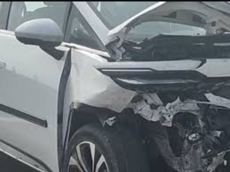 - क्षति: टक्कर इतनी शक्तिशाली थी कि कार का अगला हिस्सा पूरी तरह पिचक गया।