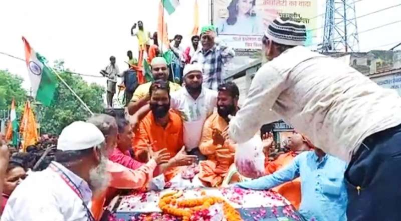 मुस्लिम पक्ष के लोगों ने कांवड़ियों को फूलमालाएं पहनाई और गले मिलकर स्वागत किया गया। सीओ समेत पुलिस टीम को भी इन लोगों ने फूलमालाएं पहनाईं तो पुलिस ने भी अमन के पैरोकारों का स्वागत किया। सभी पैदल वनखंडीनाथ मंदिर तक आए और शिवभक्तों को विदा किया। इसी दौरान बारिश भी शुरू हो गई। जलभराव के बीच जयकारे लगाते हुए कांवड़िये हरिद्वार के लिए रवाना हुए।