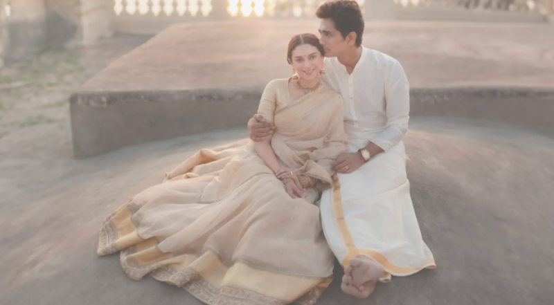 अदिति और सिद्धार्थ ने मार्च 2024 में सगाई की थी। दोनों ने एक खूबसूरत तस्वीर शेयर कर अपनी इंगेजमेंट की घोषणा की थी। इसके कुछ ही महीनों बाद सितंबर 2024 में उन्होंने दो अलग-अलग रीति-रिवाजों के साथ शादी की। पहली शादी तेलंगाना के वानपर्थी स्थित 400 साल पुराने मंदिर में हुई, जिसमें दक्षिण भारतीय परंपराओं का पालन किया गया। इसके बाद राजस्थान के आलीला फोर्ट बिशनगढ़ में एक शाही और भव्य समारोह हुआ, जिसमें परिवार और खास दोस्त शामिल हुए।