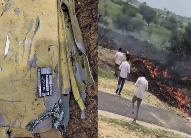 चूरू के भानुदा गांव में क्रैश हुआ जगुआर, मलबे में तब्दील हुआ विमान