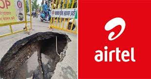 सड़क धंसी, निगम बोला एयरटेल की लापरवाही जिम्मेदार