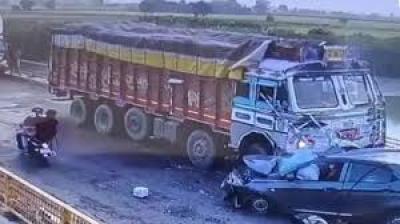 तेज रफ्तार कार ट्रेलर से टकराई, मौके पर मची चीख-पुकार