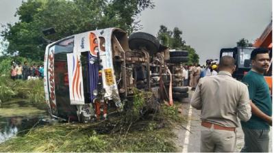 कानपुर में बड़ा सड़क हादसा, स्कूल बस ने बाइक को मारी टक्कर, खाई में पलटने से पिता-पुत्र की मौत, बेटी ICU में