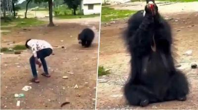 जंगल में अनोखा नज़ारा: भालू ने माजा की बोतल उठाई और गटागट पी गया, वीडियो देख यूज़र्स के मज़ेदार रिएक्शन