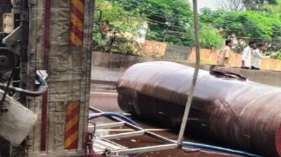 ट्रक का टायर फटा, पलटा टैंकर… हाईवे पर अफरा-तफरी